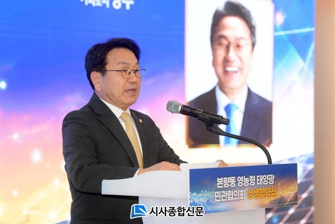 °±âÁ¤ ±¤ÁÖ½ÃÀåÀº ¡°º»·®µ¿ ¿µ³óÇü ž籤 »ç¾÷Àº ³ó¹Î¿¡°Ô´Â ÇÞºû¿¬±ÝÀ», ±â¾÷¿¡°Ô´Â RE100 ½ÇÇöÀ», ±¤ÁÖ¿¡´Â »õ·Î¿î ¿¡³ÊÁö ½Ã´ë¸¦ ¿¾îÁÙ ¼ºÀåÀÇ ±âȸ¡±¶ó¸ç ¡°¹Î°üÇùÀÇȸ°¡ »çȸÀû ÇÕÀǸ¦ À̲ô´Â ¼º°ø ¸ðµ¨ÀÌ µÅ ³ó¾÷°ú ¿¡³ÊÁö°¡ »ó»ýÇÏ´Â Àü±¹Àû Ç¥ÁØÀ» ¸¸µé°í, ±¤ÁÖ¿¡¼ ½ÃÀÛÇÑ ¸ðµ¨ÀÌ Àü³²±¤ÁÖÅëÇÕÆ¯º°½Ã¸¦ ºñ·ÔÇØ Àü±¹ÀûÀ¸·Î È®»êµÇµµ·Ï ÃÖ¼±À» ´ÙÇϰڴ١±°í ¸»Çß´Ù.