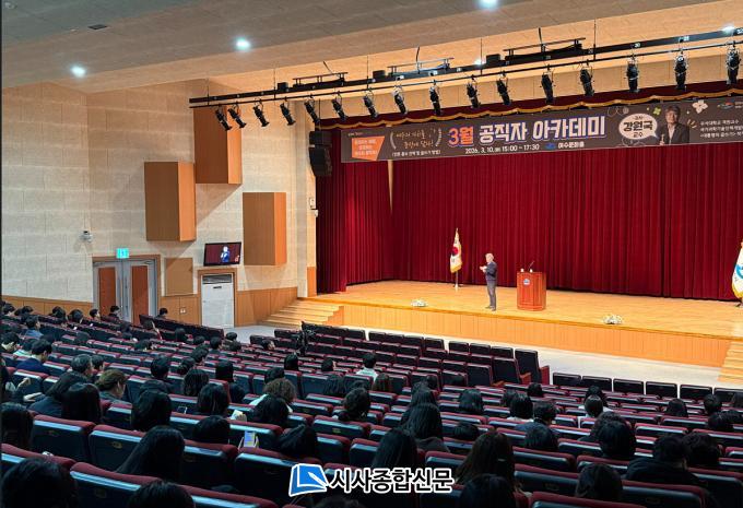 [½Ã»çÁ¾ÇսŹ® = ¿À½ÂÅà ±âÀÚ] ¿©¼ö½Ã´Â Áö³­ 10ÀÏ ¿©¼ö¹®È­È¦¿¡¼­ °øÁ÷ÀÚ 300¿© ¸íÀ» ´ë»óÀ¸·Î ¡®¾ð·Ð È«º¸ Àü·« ¹× ±Û¾²±â ½Ç¹« ¿ª·® °­È­¡¯¸¦ À§ÇÑ °øÁ÷ÀÚ ¾ÆÄ«µ¥¹Ì¸¦ °³ÃÖÇß´Ù°í ¹àÇû´Ù.