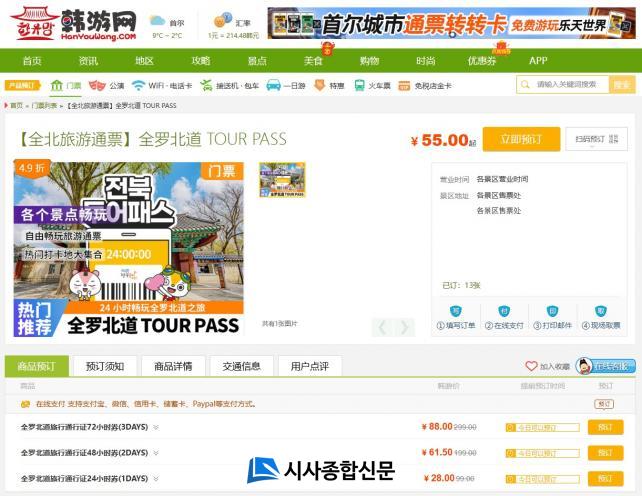 ÇÑÀ¯¸ÁÀº Áß±¹ ³»¿¡¼ Çѱ¹ ¿©Çà Á¤º¸¿Í °ü±¤»óǰÀ» Á¦°øÇÏ´Â ÁÖ¿ä ¿Â¶óÀÎ Ç÷§ÆûÀ¸·Î, À̹ø ¿¬°è ÆÇ¸Å¸¦ ÅëÇØ ÀüºÏÅõ¾îÆÐ½º ÅëÇÕ±ÇÀ» ºñ·ÔÇØ ÀüÁÖ ÇÑ¿Á¸¶À»±Ç, °æ±âÀü ¹× ±¤ÇÑ·ç¿ø ´Üµ¶±Ç µî ¿Ü±¹ÀÎ °ü±¤°´ ¼±È£µµ°¡ ³ôÀº °ü±¤»óǰÀÌ ÇöÁö¿¡¼ ÆÇ¸ÅµÈ´Ù.