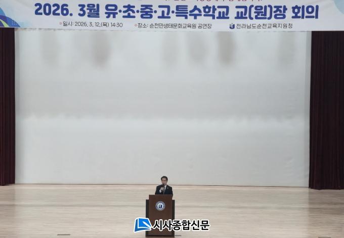 [½Ã»çÁ¾ÇսŹ® = ¿À½ÂÅà ±âÀÚ] ¼øÃµ±³À°Áö¿øÃ»(±³À°Àå ±è½Å±Ô)Àº 3¿ù 12ÀÏ(¸ñ) ¼øÃµ¸¸»ýŹ®È­±³À°¿ø °ø¿¬Àå¿¡¼­ °ü³» À¯․ÃÊ․Áß․°í․Ư¼öÇб³ ±³(¿ø)Àå 82¸íÀ» ´ë»óÀ¸·Î 2026Çг⵵ 3¿ù ±³(¿ø)Àå ȸÀǸ¦ °³ÃÖÇß´Ù.