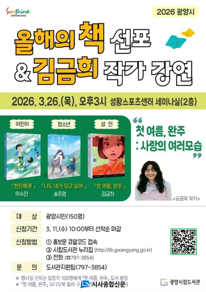 ±¤¾ç½Ã¸³µµ¼°üÀº Áö³´Þ ¡®2026³â ¿ÃÇØÀÇ Ã¥¡¯À¸·Î ¡ã¾î¸°ÀÌ ºÎ¹® ¡¸ÇöÁø¿¡°Ô¡¹(À̼öÁø, »ç°èÀý) ¡ãû¼Ò³â ºÎ¹® ¡¸³ªµµ ³×°¡ µÇ°í ½Í¾î¡¹(¼ÛÁÖ¿µ, ÃʷϼÀç) ¡ã¼ºÀÎ ºÎ¹® ¡¸Ã¹ ¿©¸§, ¿ÏÁÖ¡¹(±è±ÝÈñ, ¹«Á¦) µî ÃÑ 3±ÇÀ» ¼±Á¤ÇßÀ¸¸ç, À̹ø ¼±Æ÷½ÄÀ» ÅëÇØ ¡®2026³â ½Ã¹Î ÇÑ Ã¥ Àб⠻ç¾÷¡¯À» º»°Ý ÃßÁøÇÑ´Ù.