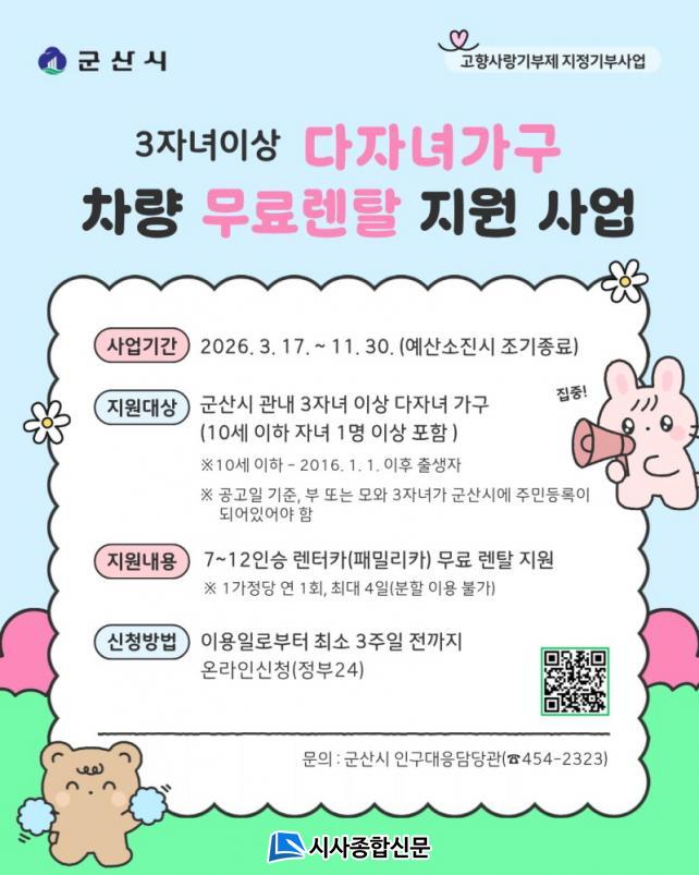 ÀÚ¼¼ÇÑ ³»¿ëÀº ±º»ê½Ã ´©¸®Áý °ø°í¹®À» ÅëÇØ È®ÀÎÇÒ ¼ö ÀÖÀ¸¸ç, ¹®ÀÇ´Â ±º»ê½Ãû Àα¸´ëÀÀ´ã´ç°ü(¢Ï063-454-2323)À¸·Î ÇÏ¸é µÈ´Ù.