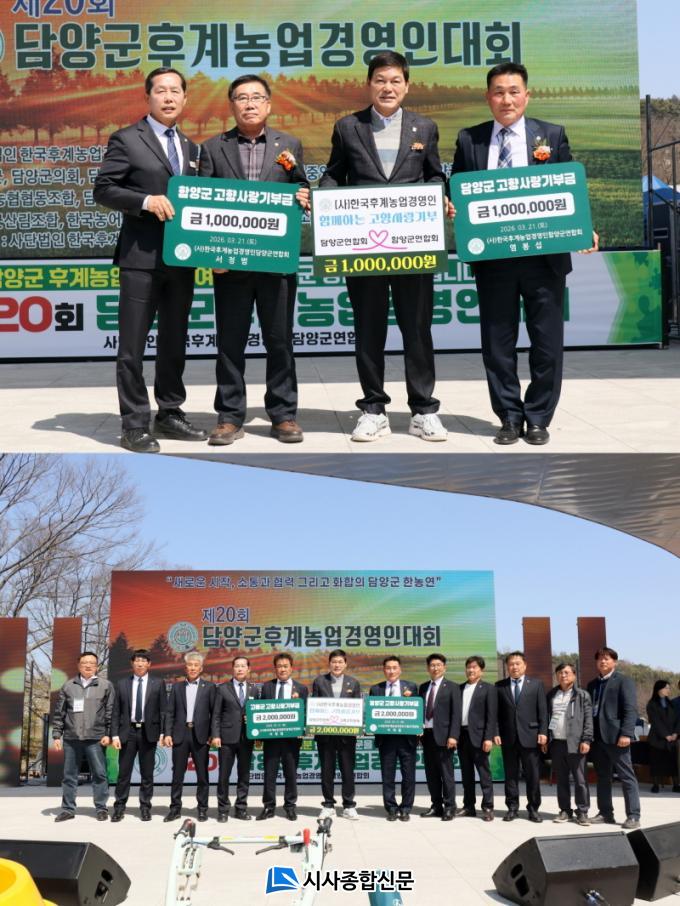 [½Ã»çÁ¾ÇսŹ® = ¿À½ÂÅà ±âÀÚ] (»ç)Çѱ¹Èİè³ó¾÷°æ¿µÀÎ ´ã¾ç±º¿¬ÇÕȸ(ȸÀå ¼Á¤¹ü)°¡ Áö³ 21ÀÏ ¿¸° ¡®Á¦20ȸ ´ã¾ç±º Èİè³ó¾÷°æ¿µÀδëȸ¡¯¿¡¼ °íÈﱺ¿¬ÇÕȸ(ȸÀå ÀÌÀçö), ÇԾ籺¿¬ÇÕȸ(ȸÀå ¿°ºÀ¼·)¿Í °íÇâ»ç¶û±âºÎ±Ý »óÈ£ ±âʽÄÀ» ÁøÇàÇß´Ù.