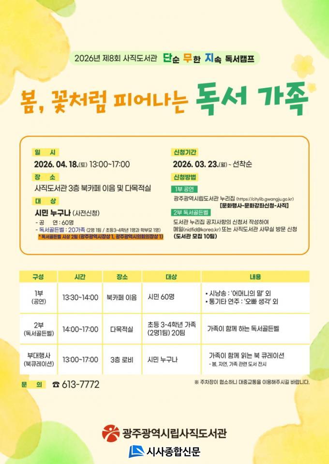 °ø¿¬ °ü¶÷ ½ÅûÀº ½Ã¸³µµ¼°ü ´©¸®Áý(https://citylib.gwangju.go.kr)¿¡¼ °¡´ÉÇϰí, µ¶¼°ñµçº§ Âü°¡ ½ÅûÀº ÀüÀÚ¿ìÆí(nidfid@korea.kr) ¶Ç´Â »çÁ÷µµ¼°ü ¹æ¹®ÇØ Á¢¼öÇÏ¸é µÈ´Ù. ÀÚ¼¼ÇÑ »çÇ×Àº ½Ã¸³µµ¼°ü ´©¸®ÁýÀ̳ª ÀüÈ(613-7772)·Î ¹®ÀÇÇÏ¸é µÈ´Ù.