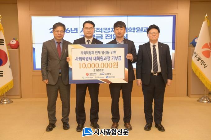 ±¤ÁÖ±¤¿ª½Ã´Â 27ÀÏ ½Ãû ºñÁî´Ï½º·ë¿¡¼ ¡®»çȸÀû°æÁ¦ ´ëÇпø°úÁ¤ Áö¿ø»ç¾÷ ±âºÎ±Ý Àü´Þ½Ä¡¯À» ¿¾î ´Ù¿ìȯ°æ ÀÌÁ¤ÀÏ ´ëÇ¥·ÎºÎÅÍ ±âºÎ±Ý 1000¸¸¿øÀ» Àü´Þ¹Þ¾Ò´Ù. Çà»ç¿¡´Â ±è¿µ¹® ¹®È°æÁ¦ºÎ½ÃÀå°ú ÀÌÁ¤ÀÏ ´ëÇ¥, ±èµµ°æ Á¶¼±´ëÇб³ ´ëÇпøÀå µîÀÌ Âü¼®Çß´Ù.