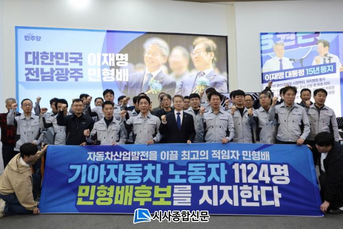 ¹ÎÇü¹è È帴 ¡°Áö¿ª °æÁ¦ÀÇ ½ÉÀåÀÎ ±â¾ÆÀÚµ¿Â÷ ³ëµ¿ÀںеéÀÇ ÁöÁö´Â ¹«¾ùº¸´Ù °ªÁø ½Å·ÚÀÇ Ç¥Çö¡±À̶ó¸ç, ¡°ÇöÀåÀÇ ¶¡¹æ¿ïÀÌ ÇêµÇÁö ¾Êµµ·Ï ³ëµ¿ÀÌ Á¸Áß¹Þ°í ÀÚµ¿Â÷ »ê¾÷ÀÌ ¼¼°èÀûÀÎ °æÀï·ÂÀ» °®Ãß´Â Àü³²±¤ÁÖÆ¯º°½Ã¸¦ ¹Ýµå½Ã Àϱ¸°Ú´Ù¡±°í È´äÇß´Ù.