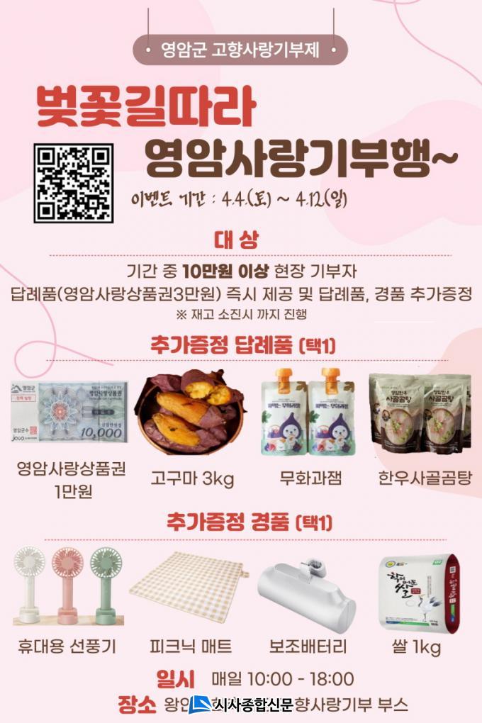 ÀÌ¿Í ÇÔ²² ÃàÁ¦ ±â°£ÀÎ 4¿ù 4ÀϺÎÅÍ 12ÀϱîÁö ÃàÁ¦Àå ³» °íÇâ»ç¶û±âºÎ ºÎ½º¿¡¼´Â ÇöÀå ±âºÎ À̺¥Æ®µµ ¿î¿µµÈ´Ù. ÇöÀå¿¡¼ ±âºÎ¿¡ Âü¿©ÇÒ °æ¿ì ±âÁ¸ ´ä·Êǰ¿¡ ´õÇØ Ãß°¡ ÁõÁ¤Ç°À» ¹ÞÀ» ¼ö ÀÖ´Ù.
