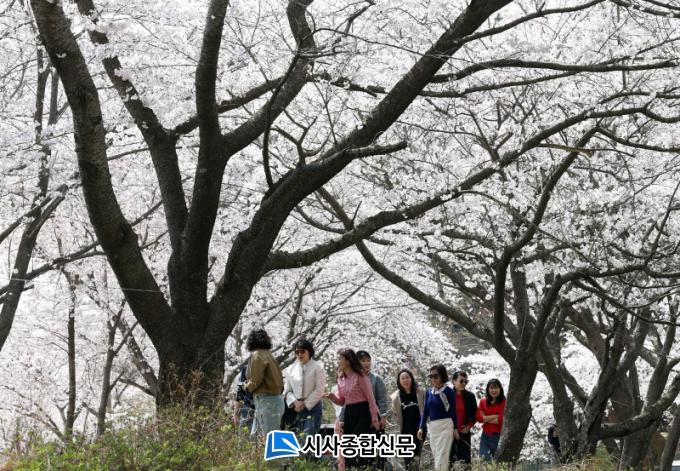 [½Ã»çÁ¾ÇսŹ®] ¿Ï¿¬ÇÑ º½ ³¯¾¾¸¦ º¸ÀÎ Áö³ 2ÀÏ, Àü³² °Áø±º ±Ý°î»ç º¢²É±æÀ» ãÀº »óÃá°´µéÀÌ ¸¼Àº ÇÏ´Ã ¾Æ·¡ Ȱ¦ ÇÉ º¢²ÉÀ» º¸¸ç º½³ªµéÀ̸¦ Áñ±â°í ÀÖ´Ù.