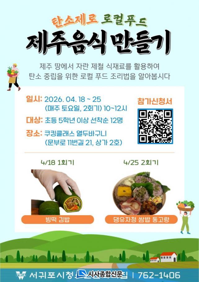 [½Ã»çÁ¾ÇսŹ® = °í¼º¹Î ±âÀÚ] (»ç)¼­±ÍÆ÷YWCA(ȸÀå ¹è¿ÁÁÖ)°¡ ¿î¿µÇÏ´Â ¼­±ÍÆ÷½Ãû¼Ò³â¹®È­ÀÇÁý(°üÀå °­ÇÏÀÚ)Àº 4¿ù 18ÀÏ, 25ÀÏ ÃÑ 2ȸ±â¿¡ °ÉÃÄ °ü³» û¼Ò³â 12¸íÀ» ´ë»óÀ¸·Î ¡°Åº¼ÒÁ¦·Î ·ÎÄÃǪµå: Á¦ÁÖÀ½½Ä ¸¸µé±â¡±ÇÁ·Î±×·¥À» ÁøÇàÇϰíÀÚ Âü°¡ÀÚ¸¦ ¸ðÁýÇÑ´Ù.