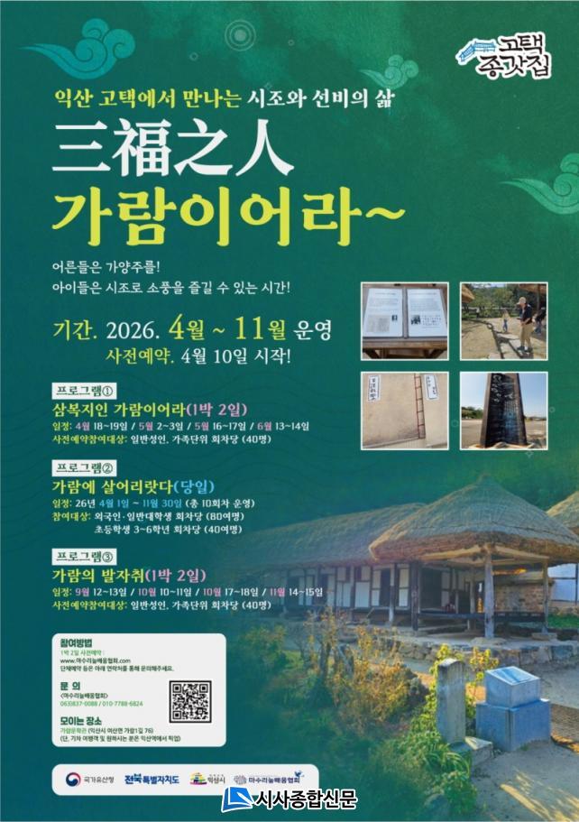 ÀÍ»ê½Ã´Â ±ÙÇö´ë ½ÃÁ¶¹®ÇÐÀÇ ¼±±¸ÀÚ °¡¶÷ À̺´±â ¼±»ýÀÇ »ý°¡¸¦ ¹«´ë·Î Çϴ üÇèÇü ¹®ÈÀ¯»ê ÇÁ·Î±×·¥ '»ïº¹ÁöÀÎ °¡¶÷À̾î¶ó'¸¦ ¿î¿µÇÑ´Ù°í 9ÀÏ ¹àÇû´Ù.