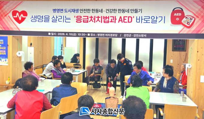 °Áø±ºÀÌ Áö³ 10ÀÏ, º´¿µ¸é ¿©ÀÚ°æ·Î´ç(Ä¿¹Â´ÏƼÄÉ¾î »ç¶û¹æ)¿¡¼ 30¿© ¸íÀÇ ¾î¸£½Å°ú Àα٠ÁֹεéÀ» ´ë»óÀ¸·Î ÀÚµ¿½ÉÀåÃæ°Ý±â(AED) »ç¿ë¹ý ±³À°À» ½Ç½ÃÇß´Ù.