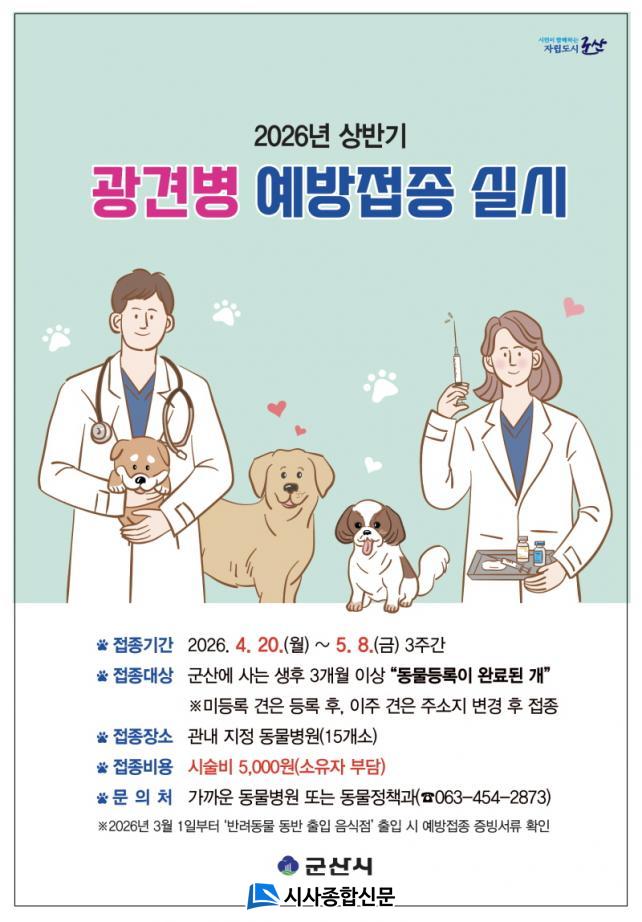[½Ã»çÁ¾ÇսŹ® = ¿À½ÂÅà ±âÀÚ] ±º»ê½Ã´Â 4¿ù 20ÀϺÎÅÍ 5¿ù 8ÀϱîÁö 3ÁÖ°£ °ü³» µ¿¹°º´¿ø 15°³¼Ò¿¡¼­ »ó¹Ý±â ±¤°ßº´ ¿¹¹æÁ¢Á¾À» ½Ç½ÃÇÑ´Ù°í ¹àÇû´Ù.
