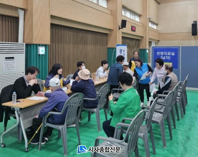 À̳¯ ÇöÀå¿¡¼´Â ¿ø±¤´ëÇб³º´¿ø ÀÇ·áÁøÀÌ Âü¿©ÇØ ÅëÁõ Áø·á¿Í °Ç° »ó´ãÀ» ÁøÇàÇßÀ¸¸ç, ±¤ÁÖ ÇÏÆ®Ä¡°úÀÇ¿øÀº ±¸° °ËÁøÀ», ´©¸®¾È¿Éƽ½º´Â Á¤¹Ð ½Ã·Â°Ë»ç¿Í µ¸º¸±â¸¦ Áö¿øÇß´Ù. Çà»ç´Â ³ó¾÷ÀÎ 500¿© ¸íÀÌ Âü¿©ÇØ Å« È£ÀÀÀ» ¾ò¾ú´Ù.
