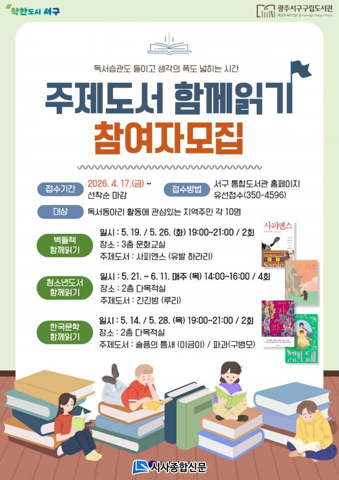 À̹ø ¡®ÇÔ²²Àб⡯ ÇÁ·Î±×·¥Àº ÂøÇѵ¶¼¹ýÀ» ¹ÙÅÁÀ¸·Î Âü¿©ÀÚµéÀÌ ÁÖÁ¦ µµ¼¸¦ ÇÔ²² Àаí ÀǰßÀ» ³ª´©´Â ¹æ½ÄÀ¸·Î ¿î¿µÇÑ´Ù. ƯÈ÷ È¥ÀÚ Àб⠾î·Á¿î µµ¼¸¦ ÇÔ²² ÀÐÀ¸¸ç µ¶¼ ºÎ´ãÀ» ³·Ãß°í µ¿¾Æ¸® Ȱµ¿¿¡ ´ëÇÑ Èï¹Ì¸¦ ³ôÀÏ ¼ö ÀÖµµ·Ï ±¸¼ºÇß´Ù.