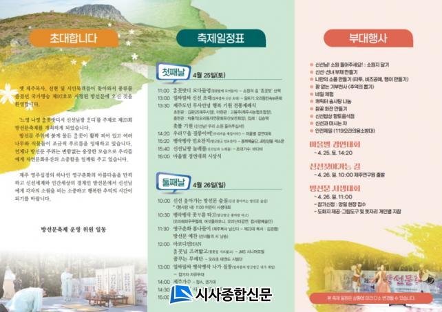 ÁÖ¿ä Çà»ç·Î´Â ¹«»ç¾È³ç Á¦ÁÖµµ¹Î Çູ±â¿øÁ¦, Á¦ÁÖ¸ñ»ç ÇàÂ÷ À翬, ¡®½Å¼±´Ô! ¿ì¸® ¼Ò¿ø µé¾îÁֽʼ¡¯ ÃÐºÒ±â¿ø, Àü¹®¿¹¼ú °ø¿¬, °¢ ¸¶À»ÀÌ Âü¿©ÇÏ´Â ¡®¿ì¸®ᄆᆞÀ» Áú·îÀÌ¿©¡¯ °æ¿¬ ÇÁ·Î±×·¥ µîÀÌ ¸¶·ÃµÅ ÁֹΠÈÇÕ°ú °øµ¿Ã¼ Á¤½ÅÀ» µÇ»õ±â´Â ÀÚ¸®°¡ µÉ Àü¸ÁÀÌ´Ù.