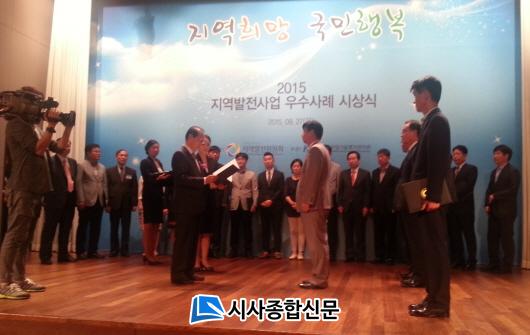 ³ªÁֽð¡ ÃßÁøÇϰí ÀÖ´Â Ãë¾àÁö ÀÀ±Þ½Ç ¿ø°Ý ÇùÁø½Ã½ºÅÛ ±¸Ãà»ç¾÷ÀÌ ´ëÅë·É Á÷¼Ó±â±¸ÀÎ Áö¿ª¹ßÀüÀ§¿øÈ¸(À§¿øÀå ÀÌ¿øÁ¾)ÀÇ 2015³â Áö¿ª¹ßÀü»ç¾÷ ¿ì¼ö»ç·Ê¿¡ ¼±Á¤, 27ÀÏ ºÎ»êÇØ¿î´ë ±×·£µåÈ£ÅÚ¿¡¼ ¿¸° 2015³â Áö¿ª¹ßÀü»ç¾÷ ¿ì¼ö»ç·Ê ½Ã»ó½Ä¿¡¼ ÀÌ¿øÁ¾Áö¿ª¹ßÀüÀ§¿øÈ¸ À§¿øÀåÀ¸·ÎºÎÅÍ »óÆÐ¸¦ ¹Þ¾Ò´Ù.