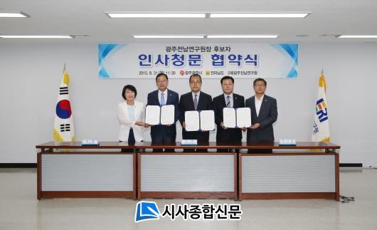 À̳¯ Çù¾à½Ä¿¡¼ Àü³²µµÀÇȸ¿Í ±¤ÁÖ½ÃÀÇȸ´Â ±¤ÁÖÀü³²¿¬±¸¿øÀå Èĺ¸ÀÚ¿¡ ´ëÇÏ¿© °øµ¿ Àλç û¹®È¸¸¦ ½Ç½ÃÇϱâ·Î Çϰí ÇØ´ç »óÀÓÀ§¿¡¼ ½Ç¹«ÇùÀǸ¦ °ÅÃÄ ¿ì¼öÇÑ ´É·Â°ú ÀÚÁúÀ» °®Ãá ÀÎÀ縦 ÀÓ¸íÇϱâ·Î ÇßÀ¸¸ç, Çù¾à³»¿ëÀ¸·Î´Â Àλçû¹®À§¿øÈ¸ ±¸¼ºÀº ½ÃµµÀÇȸÀÇ ¿¬±¸¿ø °üÇÒ »óÀÓÀ§¿øÈ¸ À§¿ø µîÀ¸·Î °¢°¢ 5¸í¾¿ ÃÑ 10¸íÀ» ±¸¼ºÇϰí, ¿¬±¸¿øÀ¸·ÎºÎÅÍ Àλçû¹® ¿äû¼°¡ Á¦ÃâµÈ ³¯ºÎÅÍ 15ÀÏ À̳»¿¡ °³ÃÖÇϱâ·Î ÇÏ¿´´Ù.