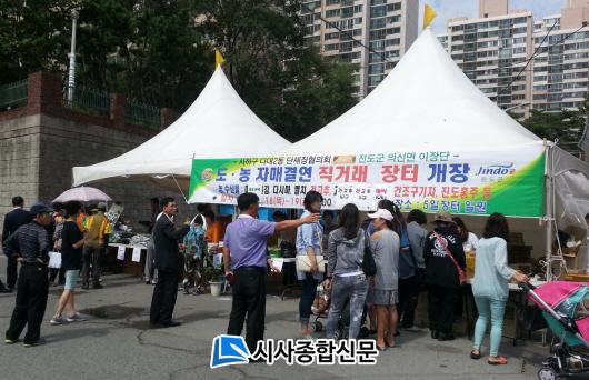 ¿À´Â 9¿ù 8ÀÏ(È)°ú 9ÀÏ(¼ö) ¾çÀϵ¿¾È ºÎ»ê±¤¿ª½Ã ´Ù´ë 2µ¿ 5ÀÏ ÀåÅÍ Àαٿ¡¼ Áøµµ ³ó¼öƯ»ê¹° Àü½Ã ÆÇ¸ÅÇà»ç, Ư»êǰ ½Ã½Ä?½ÃÀ½ Çà»ç¸¦ °³ÃÖÇϸç, À̳¯ Çà»ç´Â µµ-³ó°£ ÀڸŰῬ µµ½Ã ¼ÒºñÀڵ鿡°Ô Áøµµ¸íǰÀÎ ³ó¼öƯ»ê¹°À» È«º¸ ÆÇ¸ÅÇØ Áøµµ Ư»ê¹°ÀÇ ¿ì¼ö¼ºÀ» ¾Ë¸®°í °íÁ¤ °í°´À» È®º¸, ¼¼¿ùÈ£ »ç°í ÀÌÈÄ Ä§Ã¼µÈ Áö¿ª°æÁ¦ Ȱ¼ºÈ¿Í ³ó¾î¹Î ¼Òµæ Áõ´ë¿¡ ±â¿©Çϱâ À§ÇØ ¿¸°´Ù.