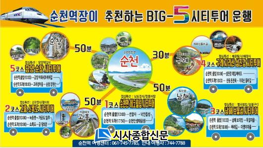 ÀÌ »óǰÀº ¼öµµ±Ç¿¡¼ ¾ÆÄ§¿¡ Ãâ¹ßÇÏ´Â KTX(703, 705¿Â÷)¸¦ Ÿ°í ¼øÃµ¿ª¿¡ µµÂøÇÏ¸é ´ÔÇØ¾È±Ç ÁÖ¿ä °ü±¤Áö¸¦ ¼øÈ¯ÇÏ´Â ½ÃƼÅõ¾î¹ö½º¸¦ ¿¬°èÇÏ´Â ¹æ½ÄÀ¸·Î, Àú³á KTX(716,718¿Â÷)·Î µ¹¾Æ°¡´Â ´çÀÏ»óǰ°ú ´ÙÀ½³¯ ¿ÀÈÄ KTX(712,714¿Â÷)·Î µ¹¾Æ°¡´Â 1¹Ú2ÀÏ »óǰÀ¸·Î Â¥¿©Á® ÀÖÀ¸¸ç, »óǰ °¡°ÝÀº ¿Õº¹±âÂ÷ºñ¿Í ½ÃƼÅõ¾î ¿ä±Ý(ÄÚ½ºº°:1¸¸¿ø~1¸¸5õ¿ø¼±), ÀÔÀå·á(20~30%ÇÒÀÎ)¸¦ Æ÷ÇÔÇØ Àú·ÅÇÏ°Ô ±¸¼ºµÇ¾ú´Ù.
