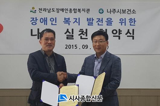 [³ªÁÖ/½Ã»çÁ¾ÇսŹ®]¹ÚµÎ¸¸ ±âÀÚ = ³ªÁֽú¸°Ç¼Ò(¼ÒÀå ¼±Çغ´)´Â 15ÀÏ Àü¶ó³²µµÀå¾ÖÀÎÁ¾ÇÕº¹Áö°ü(°üÀå ±èÀåÈÆ)°ú ¡°Àå¾Ö¿ì °Ç° ã±â ÇÑÀǾ౳½Ç¡± ¿î¿µ¿¡ µû¸¥ ¾÷¹« Çù¾à½ÄÀ» °®°í Áö¿ª»çȸ¿¡¼ ¼Ò¿ÜµÇ°í ÀÖ´Â Àå¾Ö¿ìµé¿¡°Ô Á¤±âÀûÀÎ ÇÑÀÇ¾à º¸°ÇÀǷἺñ½º¸¦ Á¦°øÇϱâ·Î ÇÏ¿´´Ù.