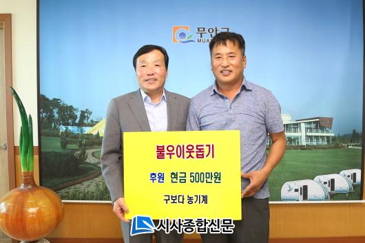 Áö³ 23ÀÏ¿¡´Â ´ëÇÑÇѵ·Çùȸ ¹«¾È±ºÁöºÎ(ÁöºÎÀå ¹Ú¹®Àç)¿¡¼ Çѵ· 800kg(260»óÀÚ/3kg)À» ±âÅ¹ÇØ ¿î³²¸éÀÇ ±âÃÊ»ýȰ¼ö±ÞÀÚ, Áö¿ª¾Æµ¿¼¾ÅÍ, ´Ù¹®È °¡Á¤ µî¿¡ Àü´ÞµÇ¾úÀ¸¸ç, ¶ÇÇÑ ±¸º¸´Ù ³ó±â°è ¹«¾È ½Å¾È ´ë¸®Á¡(´ëÇ¥ °Ãµ¿ø)¿¡¼´Â Áö¿ª ³» ¾î·Á¿î ÀÌ¿ô¿¡°Ô ½á ´Þ¶ó¸ç Çö±Ý 500¸¸¿øÀ» ±º¿¡ ±âŹÇß´Ù.