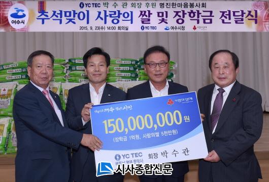 ¹Ú¼ö°ü ȸÀåÀº Áö³ 23ÀÏ ¿©¼ö½Ãû ´ëȸÀǽǿ¡¼ 1¾ï ¿øÀÇ ÀåÇбÝÀ» °ü³» 14¸í ´ëÇлý°ú °íµîÇлý 72¸í¿¡°Ô Àü´ÞÇß´Ù. ÇÔ²² 5õ¸¸ ¿ø »ó´çÀÇ ¹é¹Ì(10§¸) 2273Æ÷¸¦ °ü³» 1073°÷ÀÇ Àå¾ÖÀνü³°ú Àú¼Òµæ°¡Á¤¿¡ Àü´ÞÇß´Ù.