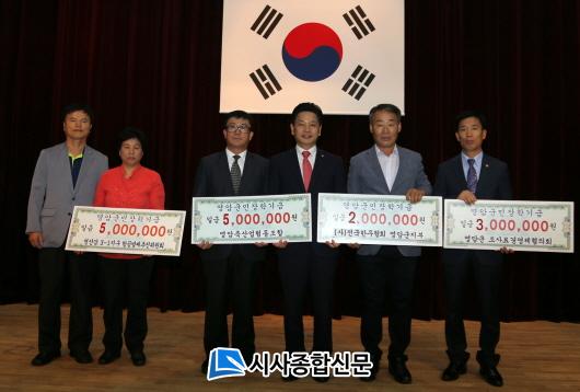À̳¯ ±âŹ½Ä¿¡¼´Â ¿µ¾ÏÃà»ê¾÷Çùµ¿Á¶ÇÕ(Á¶ÇÕÀå ¼µµÀÏ) 500¸¸¿ø, ¿µ»ê° 3-1Áö±¸ Ç×°ø¹æÁ¦ ÃßÁøÀ§¿øÈ¸(À§¿øÀå ±è¼øÀÌ) 500¸¸¿ø, ¿µ¾Ï±ºÁ¶»ç·á°æ¿µÃ¼ÇùÀÇȸ 300¸¸¿ø, (»ç)Àü±¹ÇÑ¿ìÇùȸ ¿µ¾Ï±ºÁöºÎ(ÁöºÎÀå ¾È»ó±æ) 200¸¸¿øÀÇ ÀåÇбÝÀ» ±âŹÇß´Ù. ƯÈ÷, À̹ø¿¡ ÀåÇбÝÀ» ±âŹÇÑ ´ÜüµéÀº Àü¿¡µµ ÀåÇбÝÀ» ±âÅ¹ÇØ¿Â ´Üüµé·Î ¿µ¾ÏÃà»ê¾÷Çùµ¿Á¶ÇÕ (3ȸ 1,200¸¸¿ø),¿µ»ê°3-1Áö±¸ Ç×°ø¹æÁ¦´Ü(1ȸ 500¸¸¿ø), ¿µ¾Ï±ºÁ¶»ç·á°æ¿µÃ¼ÇùÀÇȸ(3ȸ 800¸¸¿ø), (»ç)Àü±¹ÇÑ¿ìÇùȸ¿µ¾Ï±ºÁöºÎ(1ȸ 200¸¸¿ø)À» ±âŹÇß¾ú´Ù.