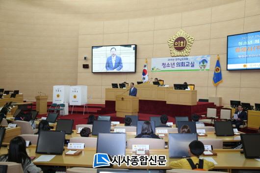 ¸íÇö°ü Àü³²µµÀÇȸÀÇÀåÀº ¡°Ã»¼Ò³â ÀÇȸ±³½ÇÀº Àڶ󳪴 ¿ì¸® û¼Ò³âµéÀÌ Áö¹æÀÇȸÀÇ ±â´É°ú ¿ªÇÒÀ» ¹è¿ì°í Á÷Á¢ ÀÇ»çÁøÇà °úÁ¤À» üÇèÇÏ¸é¼ ¿Ã¹Ù¸¥ ¹ÎÁֽùÎÀ¸·Î¼ÀÇ ÀÚÁúÀ» ¹è¿ï ¼ö ÀÖ´Â ÁÁÀº ±âȸ°¡ µÉ °ÍÀÌ´Ù.¡±¶ó°í ¸»Çß°í, ÀÇȸ±³½Ç ÀÇÀå¿¡ ´ç¼±µÈ ÇØ³²¼ÃÊ ±è¹Î°æ ÇлýÀº ¡°µµÀÇȸ ÀÇÀåÀ¸·Î ´ç¼±µÇ¾î ¸Å¿ì ±â»¼°í, ÀÇÀåÀ¸·Î¼ ȸÀÇ ÁøÇàÀº ¸Å¿ì Àç¹ÌÀÖ¾úÀ¸¸ç, Á¶·ÊÁ¦Á¤ µî ÀÇȸ¿¡¼ ÀÇ¿ø´ÔµéÀÌ ¹«¾ùÀ» ÇÏ´ÂÁö ¾Ë°Ô µÇ¾î¼ ´õ¿í ¾ËÂù ½Ã°£À̾ú´Ù.¡±°í ¸»Çß´Ù.