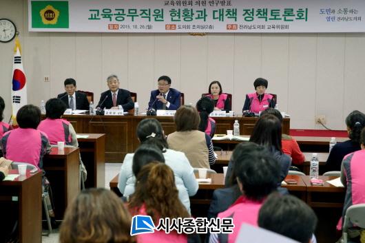À̳¯ Åä·Ðȸ´Â Àü³²µµÀÇȸ ±³À°À§¿øÈ¸°¡ °ø°øºÎ¹® ºñÁ¤±ÔÁ÷ Áß °¡Àå ¸¹Àº ºñÁ¤±ÔÁ÷ÀÌ ±Ù¹«Çϰí ÀÖ´Â Çб³ ±³À°°ø¹«Á÷¿ø¿¡ ´ëÇÑ ÇöȲÀ» Áø´ÜÇÏ°í ´Ù¾çÇÑ ´ë¾ÈÀ» ¸ð»öÇϱâ À§ÇØ ¸¶·ÃÇÑ ÀÚ¸®¿´´Ù.