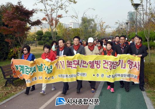 [¸ñÆ÷/½Ã»çÁ¾ÇսŹ®]¾çµÎ¿µ ±âÀÚ = ¸ñÆ÷½Ã¿©¼º´ÜüÇùÀÇȸ(ȸÀå õÁ¤¾Ö)°¡ ÁÖ°üÇÑ 2015 ¼¼°è °È±âÀÇ ³¯ ±â³ä 1111 ½Ã¹Î °Ç°°È±â Çà»ç°¡ Áö³ 11ÀÏ À̷ΰø¿ø(¹ö½ºÅ͹̳Π°Ç³ÊÆí)¿¡¼ ¿·È´Ù.