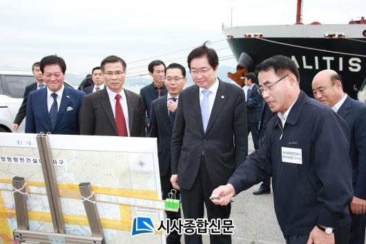 | ¡ã±¤¾çÇ× ÄÁÅ×À̳ʺεΠ3-2´Ü°è °Ç¼³ÇöÀåÀ» ¹æ¹®ÇÑ ±è¿µ¼® ÇØ¾ç¼ö»êºÎ Àå°ü(°¡¿îµ¥)ÀÌ °ø»ç °ü°èÀڷκÎÅÍ ÇöȲ ¼³¸íÀ» µè°í ÀÖ´Ù. |