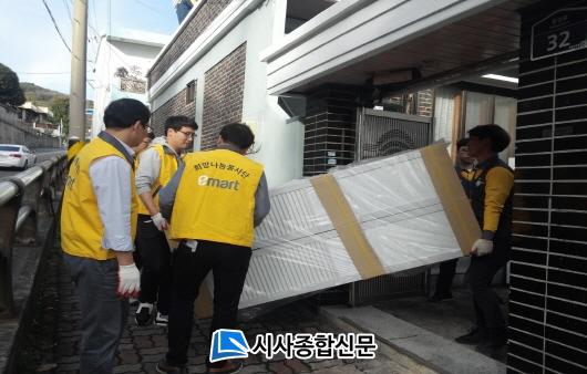 À̳¯ ºÀ»çȰµ¿¿¡´Â 40¸íÀÇ À̸¶Æ® ¿©¼öÁ¡ Á÷¿øµéÀÌ Âü¿©ÇßÀ¸¸ç, Àú¼Òµæ ´ÙÀÚ³à °¡±¸¿Í ÁßÁõÀå¾ÖÀÎ °¡±¸ µî 2¼¼´ë¿¡ °¢°¢ 150¸¸¿ø¾¿ 300¸¸¿øÀ» µé¿© °¡½º·¹ÀÎÁö¿Í ÀüµîÀ» ±³Ã¼ÇØ ÁÖ°í ³ÃÀå°í¿Í TV, Ã¥»ó, ¼ö³³Àå µî »ýÇÊǰµµ ÇÔ²² Àü´ÞÇØ ÁÖ¾ú´Ù.