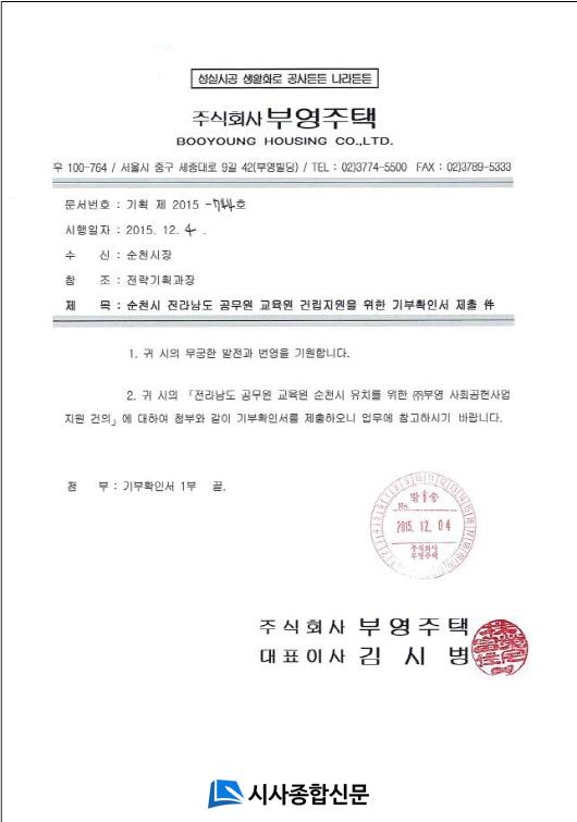 (ÁÖ)ºÎ¿µÀÌ »çȸ°øÇå»ç¾÷À¸·Î ±³À°¿ø ½Ã¼³À» ±âÁõÇÏ°Ú´Ù°í °áÁ¤Çϸé¼, Àü¶ó³²µµÀÇ ¿¾ÇÇÑ ÀçÁ¤¿©°ÇÀ» °¨¾ÈÇÏ¸é ¼øÃµ½Ã°¡ °¡Àå À¯¸®ÇÒ °ÍÀ¸·Î Àü¸ÁµÇ¸ç, Æò°¡ °úÁ¤¿¡¼ ÃæºÐÈ÷ ¹Ý¿µµÉ °ÍÀ¸·Î ±â´ëµÈ´Ù.