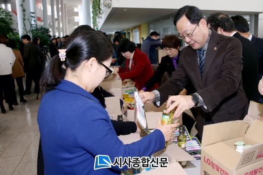 [Àü³²/½Ã»çÁ¾ÇսŹ®]¾çµÎ¿µ ±âÀÚ = Àü³²µµÀÇȸ ¸íÇö°ü ÀÇÀå°ú »óÀÓÀ§¿øÀåµéÀº 15ÀÏ µµÃ» À±¼±µµÈ¦¿¡¼ ¿¸° »ç¶û³ª´® Çູ»óÀÚ ¸¸µé±â Çà»ç¿¡ Âü¼®ÇØ ¿¬¸» ¾î·Á¿î ÀÌ¿ôµé¿¡ ´ëÇÑ »ç¶û³ª´® Ȱµ¿À» ½ÇõÇß´Ù.