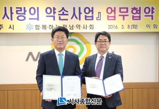| ³ªÁÖ½Ã, Àü³²¾à»çȸ¿Í ã¾Æ°¡´Â »ç¶ûÀÇ ¾à¼Õ»ç¾÷ Çù¾àü°á |