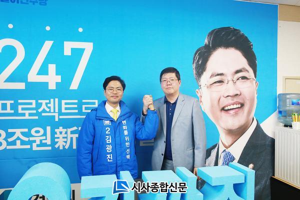 ±è À§¿øÀåÀº ¡°Áö³ º¸±È¼±°Å¿¡¼ ¼øÃµ½Ã¹ÎµéÀº ¹ÎÁÖ´ç¿¡ Å« °¡¸£Ä§À» Á̴ּÙ. ÀÌÁ¦´Â È¥ÀÌ ³µÀ¸´Ï ¹Ù²î¾î¾ß ÇÒ ¶§ÀÌ´Ù.¡±¶ó°í ¸»Çϸç, ¡°±è±¤Áø ÀÇ¿øÀÌ ¸¹Àº ¿ªÇÒÀ» ÇØÁÖ½Ç ²¨¶ó ¹Ï´Â´Ù.¡±°í ±è±¤Áø ÀÇ¿ø¿¡ ´ëÇÑ °Ý·Á¿Í ±â´ë¸¦ ³ªÅ¸³Â´Ù.