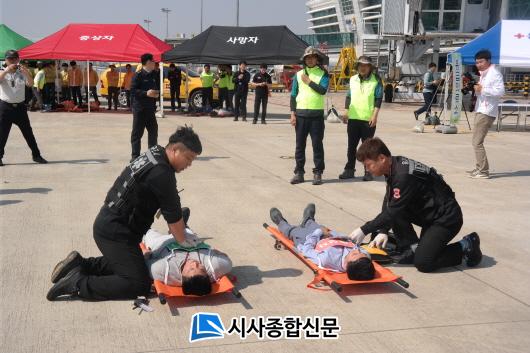 2016³â 5¿ù 18ÀÏ 15½Ã00½Ã°æ ½Â°´ 180¸íÀ» ÅÂ¿î ºÏ°æ ¹ß ¼¼±âÇ×°ø»ç ¼Ò¼Ó º¸À× 737-800Æí Ç×°ø±â¿¡ ·£µù°íÀåÀ¸·Î ¹«¾È±¹Á¦°øÇ׿¡ ºñ»óÂø·úÀ» ½ÃµµÇÏ¿´À¸³ª Ãæ°Ý¿¡ µû¸¥ µ¿Ã¼ÈÀç·Î ÀÎÇÑ ´Ù¼öÀÇ »ç»óÀÚ ¹ß»ý°¡Á¤À¸·Î ÇÑ À̹ø ÈÆ·ÃÀº Çѱ¹°øÇ×°ø»ç ¹«¾ÈÁö»ç(Áö»çÀå ÀÌÁ¾¸í)¸¦ ºñ·ÔÇÏ¿© ¹«¾È±º(±º¼ö ±èöÁÖ), ±¹Åä±³ÅëºÎ ¹«¾È°øÇ×ÃâÀå¼Ò(¼ÒÀå ±è´ë±â), ±¤ÁÖ¼¼°ü, ±¤ÁÖÃâÀÔ±¹°ü¸®»ç¹«¼Ò, ±¹¸³¸ñÆ÷°Ë¿ª¼Ò, ³ó¸²Ãà»ê°Ë¿ªº»ºÎ È£³²Áö¿ªº»ºÎ, ¹«¾È°øÇ×±â»ó´ë, ¹«¾È°æÂû¼, À°±º8332ºÎ´ë 96¿¬´ë, Àü³²¼Ò¹æÇ×°ø´ë, ¸ñÆ÷¼Ò¹æ¼, ¿µ±¤¼Ò¹æ¼, ¹«¾È±º ÀÇ¿ë¼Ò¹æ´ë, ¸ñÆ÷±âµ¶º´¿ø, ¸ñÆ÷Çѱ¹º´¿ø, ¸ñÆ÷½Ã ÀÇ·á¿ø, ¹«¾Èº´¿ø, Çѱ¹Àü·Â, ¹«¾È°Ç¼³±â°è, µ¿¹æÇ×°ø, Ƽ¿þÀÌ Ç×°ø µî 30°³ ±â°ü ¹× ¾÷ü¿¡¼ ¼Ò¹æÂ÷ ¹× ±¸±ÞÂ÷, ´ýÇÁ, Ȱ¼±Â÷ µî ÃÑ 40¿©´ëÀÇ Â÷·®․Àåºñ¿Í 200¿©¸íÀÌ Âü¿©ÇÑ °¡¿îµ¥ 1´Ü°è·Î Ç×°ø±â³» ½Â°´ ´ëÇÇÀ¯µµ¿Í ÀÚÀ§¼Ò¹æ´ëÀÇ Ãʱâ ÈÀçÁø¾ÐȰµ¿À» 2´Ü°è·Î ÀÎ¸í±¸Á¶, ÈÀçÁø¾Ð, ÀÀ±Þóġ µî¿¡ ´ëÇÏ¿© ±ä±Þ±¸Á¶Áö¿ø±â°ü°ú »óÈ£Áö¿ø, 3´Ü°è·Î Àǽɹ°Ã¼ È®ÀÎÀ» À§ÇØ °ø»ç EOD¿ä¿ø°ú ±¤ÁÖ¼¼°ü ŽÁö°ß Ã⵿ó¸® ¹× ÇÇÇØ½Ã¼³ º¹±¸ ÀÛ¾÷µî ´Ü°èº°·Î ÈÆ·ÃÀÌ ÁøÇàµÇ¾ú´Ù.