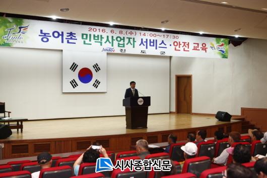 [Áøµµ/½Ã»çÁ¾ÇսŹ®]¾çµÎ¿µ ±âÀÚ = Áøµµ±ºÀÌ ³ó¾îÃÌ ¹Î¹Ú À̿밴ÀÇ ¸¸Á·µµ¸¦ ³ôÀ̱â À§ÇØ ÃÖ±Ù Áøµµ±ºÃ» ´ëȸÀǽǿ¡¼ ¹Î¹Ú»ç¾÷ÀÚ 122¸íÀ» ´ë»óÀ¸·Î ³ó¾îÃÌ¹Î¹Ú ¼ºñ½º ¾ÈÀü ±³À°À» ½Ç½ÃÇß´Ù.