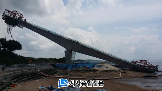 °Ç¼³ÁßÀÌ´ø ´Ù¸®´Â »óÆÇ ÄÜÅ©¸®Æ® Ÿ¼³Áß °íÁ¤ ÀåÄ¡°¡ ²÷¾îÁö¸é¼ ±³°¢ 14¹ø »óÆÇÀÌ ¹Ù´Ù¹æÇâÀ¸·Î ±â¿ï µí ¹«³ÊÁ® ³»·ÈÀ¸¸ç, ÀÌ·Î ÀÎÇØ ÀÛ¾÷ÁßÀÌ´ø ÀκΠ6¸íÀÌ Áß°æ»óÀ» ÀÔ°í Àα٠º´¿øÀ¸·Î Èļ۵Ǿú´Ù.