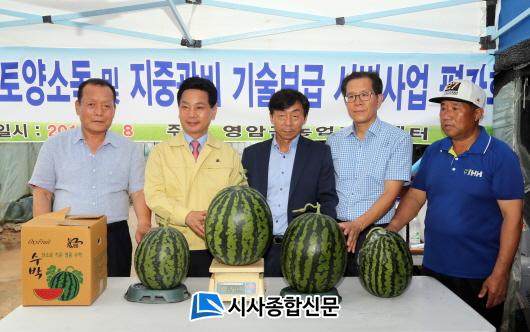 ¿µ¾Ï³ó¾÷±â¼ú¼¾ÅÍ¿¡¼´Â °ü³» ½Ã¼³ÇϿ콺¿¡ ½Å±â¼ú º¸±ÞÀ» À§ÇÏ¿© ±Ý³â ÃßÁøÇÏ¿´À¸¸ç, À̸¦ ¹ÙÅÁÀ¸·Î ¿µ¾Ï±º ³ó»ê¹°ÀÇ ¸íǰ ºê·£µåȸ¦ À§ÇÑ Ãʼ®À» ¸¶·ÃÇß´Ù´Â Æò°¡·Î, ¼ö¹Ú Àç¹è¿¡ ½Å±â¼úÀ» µµÀÔÇÑ ½Ã¹ü³ó°¡´Â ±âÁ¸ Àç¹è¹æ½Ä¿¡ ºñÇÏ¿© Á¤½ÄÈÄ ¸ðÁ¾ÀÇ °áÁÖÀ²ÀÌ È®¿¬È÷ °¨¼ÒµÇ¾ú°í, ¼ö¹Ú »ýÀ° ±â°£ÀÌ »¡¶óÁö´Â °ÍÀº ¹°·Ð ´çµµµµ ¿ùµîÈ÷ ³ô°Ô ³ª¿Í ¿ª´ë ¼ö¹Ú ³ó»çÁß ÃÖ°í °¡°ÝÀ¸·Î ÆÇ¸ÅÇÏ¿´´Ù°í ÀüÇß´Ù.