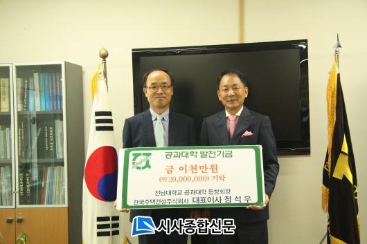 [±¤ÁÖ/½Ã»çÁ¾ÇսŹ®]¿ÀÁ¤±Ù ±âÀÚ = Çѱ¹ÁÖÅðǼ³(ÁÖ) Á¤¼®¿ì ´ëÇ¥À̻簡 Àü³²´ëÇб³ °ø°ú´ëÇп¡ ¹ßÀü±â±Ý 2,000¸¸¿øÀ» ±âŹÇß´Ù.