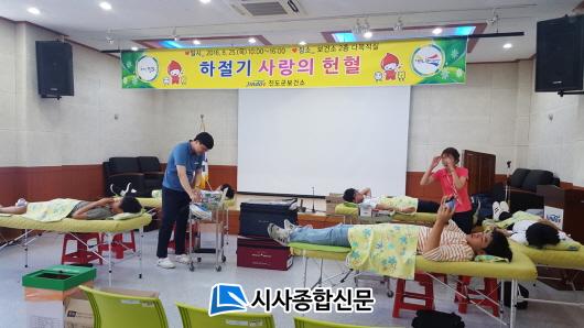 À̹ø¿¡ ½Ç½ÃÇÑ ÇåÇ÷Àº ¿©¸§ ÈÞ°¡Ã¶°ú ¹æÇÐÀ¸·Î ÇåÇ÷ÀÚ°¡ °¨¼ÒÇÏ¸é¼ Ç÷¾× È®º¸ÀÇ ¾î·Á¿òÀ» ÇØ¼ÒÇϱâ À§ÇØ ´ëÇÑÀû½ÊÀÚ»ç ±¤ÁÖ¡¤Àü³² Ç÷¾×¿ø°ú ÇÔ²² ½Ç½ÃÇßÀ¸¸ç, 54¸íÀÇ Áøµµ ±º¹ÎÀÌ Âü¿©Çß´Ù, ÇåÇ÷ÀÚ¿¡°Ô´Â ¼ÒÁ¤ÀÇ ±â³äǰ Á¦°ø°ú »çȸº¹ÁöÀÚ¿øºÀ»ç ÀÎÁõ°ü¸®¼¾Å͸¦ ÅëÇÑ 4½Ã°£ÀÇ ºÀ»çȰµ¿ ½Ã°£ÀÌ ÀÎÁ¤µÇ´Â µî ÀÚ½ÅÀÇ °Ç°»óŵµ È®ÀÎÇϰí ÀÌ¿ô»ç¶ûµµ ½ÇõÇÒ ¼ö ÀÖ´Â ÁÁÀº °è±â°¡ µÇ¾ú´Ù.