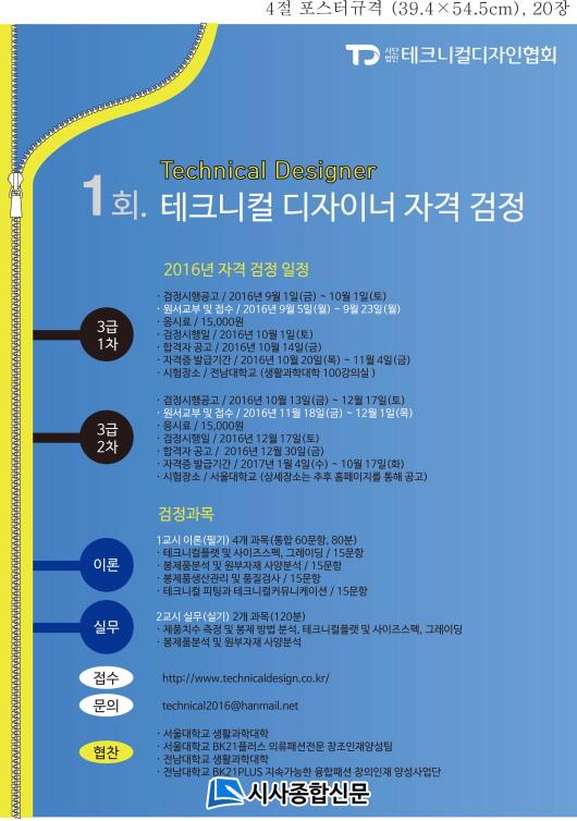 »ç´Ü¹ýÀÎ Å×Å©´ÏÄõðÀÚÀÎÇùȸ´Â ÆÐ¼Ç»ê¾÷ÀÇ °úÇÐÈ ¹× Áö½Ä»ý»ê »ê¾÷À¸·Î¼ÀÇ ±â¹ÝÁ¶¼º, ±Û·Î¹úÈ¿¡ µû¶ó Áß¿äÇÑ ÆÐ¼ÇÀü¹®Á÷À¸·Î ¶°¿À¸¥ ¡®Å×Å©´ÏÄõðÀÚÀ̳ʡ¯ ¾ç¼ºÀ» ¸ñÀûÀ¸·Î ¼³¸³µÆÀ¸¸ç, Á÷¹«´É·Â ¿Ï¼ºµµ°¡ ³ôÀº Å×Å©´ÏÄõðÀÚÀÌ³Ê ¾ç¼ºÀ» À§ÇØ ÀڰݰËÁ¤ °úÁ¤À» ¿î¿µÇϰí ÀÖ´Â °¡¿îµ¥, À̹ø ÀڰݰËÁ¤ ½ÃÇèÀº 2016³â 10~12¿ù »çÀÌ¿¡ µÎ Â÷·Ê¿¡ ½Ç½ÃµÇ¸ç ù ¹øÂ°°¡ Àü³²´ëÇб³, µÎ ¹øÂ°´Â ¼¿ï´ëÇб³¿¡¼ Ä¡·¯Áø´Ù.