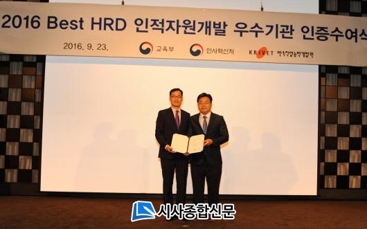 ÇÑÆí, Àü³²´ëÇб³´Â Áö³ 9¿ù 23(±Ý) ¼¿ï ¿¤Å¸¿ö¿¡¼ ¿¸° Best HRD ÀÎÁõ¼ö¿©½Ä¿¡ ¼º´Àç »ç¹«±¹ÀåÀÌ Âü¼®ÇØ ÀÎÁõ¼ ¹× ÀÎÁõÆÐ¸¦ ¹Þ¾Ò´Ù.