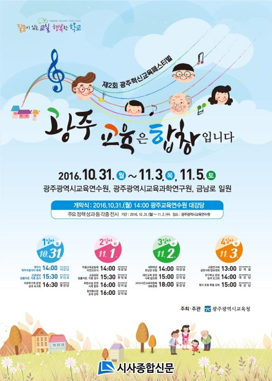 À̹ø Çà»ç´Â ¡®±¤ÁÖ±³À°Àº ÇÕâÀÔ´Ï´Ù¡¯¸¦ ½½·Î°ÇÀ¸·Î ÇÑ ÇØ µ¿¾È ±¤ÁÖÇõ½Å±³À°ÀÇ ¼º°ú¸¦ °øÀ¯ÇÏ°í ±¤ÁÖ±³À°ÀÇ ¹Ì·¡¸¦ ÁغñÇϱâ À§ÇÑ ±³À°ÃàÁ¦ÀÇ ÀåÀ¸·Î ¸¶·ÃµÆ´Ù. 31ÀÏ ¿ÀÈÄ 2½Ã °³¸·½ÄÀ» ½ÃÀÛÀ¸·Î û¼Ò³â µ¶¸³ Æä½ºÆ¼¹ú, Çкθ𠵿¾Æ¸® ÃàÁ¦, ¸¶À»±³À°°øµ¿Ã¼ ºñÀü¼±Æ÷½Ä, »õ·Î¿î Çз°ü Á¤¸³À» À§ÇÑ È£³²±Ç Æ÷·³, ½Ã¹Î±³À°À§¿øÈ¸ ´ëÅä·Ðȸ, ¿¬±¸Çб³ ¼º°ú º¸°íȸ¸¦ ºñ·ÔÇÑ °¢Á¾ Àü½Ã Çà»ç°¡ ´Ùä·Ó°Ô ÆîÃÄÁø´Ù.