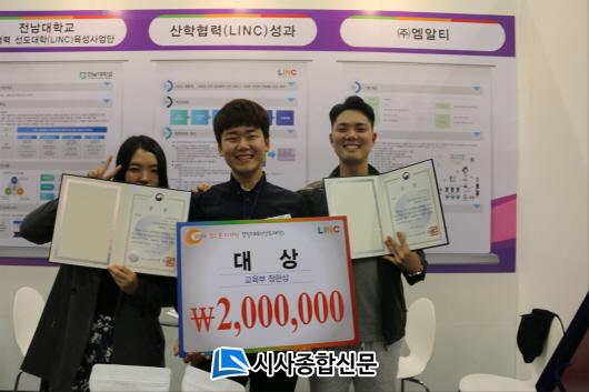 ±è¹ÎÅÂ(Áö¿ª¹ÙÀÌ¿À½Ã½ºÅÛ°øÇаú)¹Ú¿µ±Õ(°íºÐÀÚÀ¶ÇÕ¼ÒÀç°øÇаú)Á¤ÀºÁö(°æ¿µÇкÎ) ÇлýÀ¸·Î ±¸¼ºµÈ Àü³²´ë ¡®Triple Point¡¯ ÆÀÀº À̹ø ´ëȸ¿¡ »ýºÐÇØ¼º ¼ÒÀ縦 ÀÌ¿ëÇÑ ¾î¸°ÀÌ ±³À°¿ë ¿ø¿¹¿ëǰ ¡®»ý»ý¡¯À» Ãâǰ, Àü±¹ 55°³ LINC»ç¾÷ Âü¿©´ëÇаú ½Ç·ÂÀ» °Ü·é ³¡¿¡ âÀǼº°ú »ç¾÷¼º µî¿¡¼ °¡Àå ³ôÀº Á¡¼ö¸¦ ¹Þ¾Ò´Ù.