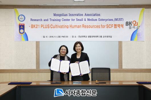 Àü³²´ëÇб³ ÀÇ·ùÇаú BK21Ç÷¯½º »ç¾÷´ÜÀº Áö³ 11¿ù 1ÀÏ(È) Àü³²´ëÇб³ »ýȰ°úÇдë ȸÀǽǿ¡¼ ¸ù°ñ´ëÇÐ »êÇÏ Çõ½ÅÇùȸ(Mongolian Innovation Association) ¹× Áß¼Ò±â¾÷¿¬±¸ÈƷü¾ÅÍ(Research and Training Center for Small & Medium Enterprises)¿Í °øµ¿ ¿¬±¸°³¹ß »êÇÐÇù·ÂüÁ¦¿¡ °üÇÑ ¾÷¹«Çù¾à ü°á½ÄÀ» °¡Á³´Ù. µÎ ±â°üÀº À̹ø Çù¾àÀ» °è±â·Î ¼¶À¯ÆÐ¼Ç ÀÚ¿ø ¹× »ý»ê±â¼ú Àü¹®°¡ ¾ç¼ºÀ» À§ÇÑ ÇÁ·Î±×·¥À» °³¼³Çϰí, ´Ù°¢ÀûÀÎ °øµ¿¿¬±¸¸¦ ÅëÇØ ±Û·Î¹ú ÆÐ¼Ç»ê¾÷ Àü¹®Àη ¾ç¼ºÀ» Àû±Ø ÃßÁøÇϱâ·Î Çß´Ù.