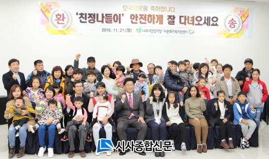 ³ªÁֽà °Ç°°¡Á¤?´Ù¹®È°¡Á·Áö¿ø¼¾ÅÍ ÁÖ°üÀ¸·Î ¼±Á¤µÈ À̵éÀº °íÇâÃâ¹ß¿¡ ¾Õ¼ 21ÀÏ ¿ÀÀü ¼Û¿ùµ¿ ¿¥½ºÅ×ÀÌÈ£ÅÚ¿¡¼ ¿¸° ȯ¼ÛÇà»ç¿¡¼ °¡Á· ¾Ù¹üÀ» ¸¸µé°í, ¸ð±¹¿¡¼ ±â´Ù¸®°í ÀÖ´Â °¡Á·µé¿¡°Ô ¹æ¹® °¡Á·µéÀÇ ¼Ò°¨À» ¿µ»óÀ¸·Î ³ª´©¸ç °íÇâ¹æ¹®¿¡ ´ëÇÑ ¼³·½°ú ±â´ë¸¦ Ç¥ÇöÇß´Ù.