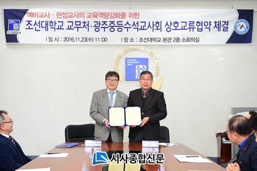 ±èÇϸ² Á¶¼±´ë ±³¹«Ã³Àå(Áß±¹¾î¹®ÈÇаú)Àº 11¿ù 23ÀÏ ¿ÀÀü 11½Ã º»°ü 2Ãþ ¼ÒȸÀǽǿ¡¼ ±èÈñ¼º ±¤ÁÖÁßµî¼ö¼®±³»çȸÀå°ú ±³Á÷°úÁ¤ À̼öÀÚÀÇ ±³À°¿ª·®À» °ÈÇÏ°í ¿ì¼ö ¿¹ºñ±³»ç ¾ç¼ºÀ» À§ÇØ »óÈ£Çù·Â Çù¾àÀ» ü°áÇß´Ù.Çù¾à¿¡ µû¶ó ¾ç ±â°üÀº Á¶¼±´ëÇб³ »ç¹ü´ëÇÐ, ÀϹݴëÇÐ ±³Á÷ °úÁ¤, ±³À°´ëÇпø µîÀÇ ±³Á÷°úÁ¤ À̼öÀÚÀÇ ±³À°¿ª·®À» °ÈÇÏ°í ¿ì ¼ö¿¹ºñ±³»ç ¾ç¼ºÀ» À§ÇÑ ´Ù¾çÇÑ ±³À°È°µ¿À» Áö¿øÇϱâ À§ÇØ »óÈ£ Çù·ÂÇÑ´Ù.