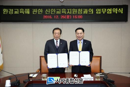 ½Å¾È±ºÀº À̹ø Çù¾àÀº Áö¿ªÀÇ Ã»¼Ò³âµéÀÌ¡¸½Å¾È±º Áö¿ªÈ¯°æ±³À°¼¾ÅÍ¡¹ÀÇ È¯°æ±³À°À» ÅëÇÏ¿© ¹Ì·¡ ³ì»ö¼ºÀåÀ» ¼±µµÇÒ Áö½Ä°ú âÀÇÀû ½Çõ·ÂÀ» °âºñÇÑ ³ì»ö¸®´õ·Î ¼ºÀåÇÒ ¼ö ÀÖµµ·Ï ¾ç ±â°üÀÌ Çù·ÂÇÏ°í ³ª¾Æ°¡ ±º¹ÎÀÇ Ä£È¯°æÀû »ýȰÀ» ÅëÇÏ¿© »îÀÇ Áú Çâ»ó°ú Áö¼Ó°¡´ÉÇÑ »çȸ ½ÇÇö¿¡ ±â¿©Çϴµ¥ ¸ñÀûÀÌ ÀÖ´Ù°í ¹àÇû´Ù.